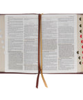 Immerse yourself in the historical insights and study notes provided by the Saddle Tan Full Grain Leather King James Version Study Bible with Thumb Index. This Bible is a meaningful gift for fathers, husbands, or sons seeking to deepen their understanding and study of the Word of God.