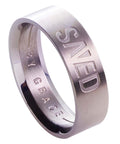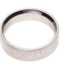 This contemporary stainless steel men's ring is exquisitely crafted and stunningly designed. It gives a wonderful reminder of God's loving grace through His son Jesus Christ as found in the Scripture verse Ephesians 2:8. The top has the word saved in a brushed finish with the words by grace stamped on the inside. The subtle interior polished beveled edge completes the look.