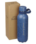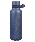 A powder-coated finish gives the bottle a smooth, modern texture while resisting scratches. The twist-off lid is finished in matching navy and includes a silicone ring to prevent leaks. A navy finger loop is integrated into the twist-off lid. The loop curves outward in a smooth arc, making it easy to slip your finger through for comfortable carrying or to clip onto a bag. The 1.5-inch mouth opening lets you easily add ice cubes or clean with a bottle brush. Hand-washing with warm water and soap is recommended to keep it looking its best. The bottle arrives in a tuck-top Kraft gift box.