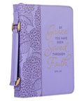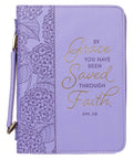 Saved by Grace Hydrangea Lavender Faux Leather Fashion Bible Cover - Ephesians 2:8