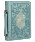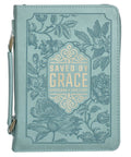 Saved by Grace Teal Faux Leather Fashion Bible Cover - Ephesians 2:8