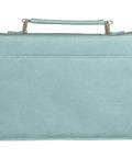 Whether she's traveling, heading to class, or going to small group, the Saved by Grace Teal Faux Leather Fashion Bible Cover will protect her Bible from damage or moisture and will keep all her important notes, pens, and study materials together in one place.