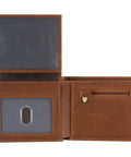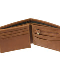The edges of the genuine leather wallet are reinforced with topstitching, and RFID-blocking technology is built into the wallet to secure your credit card numbers. Inside the wallet, you will find an ID window, 4 credit card slots, 2 multi-purpose slip pockets, and a 2-section billfold. A flip-up photo window allows you to carry the picture of a loved one, and a zipper coin purse will enable you to store change. The same durable leather used on the outside is used to construct the inside of the wallet. The men's leather wallet comes packaged in a lidded gift box that is easy to wrap.