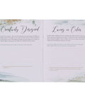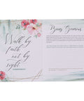 The 128 full-color interior pages are decorated with serene green landscapes and foliage and accented with vibrant pink flowers. There are 21 of these pages dedicated to beautifully stylized Scripture verses.