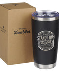 The Stand Firm Black Stainless Steel Travel Tumbler will remind your son and husband to stand firm in affirming the truth of the Bible.