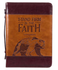 Stand Firm Two-tone Brown Faux Leather Classic Bible Cover - 1 Corinthians 16:13