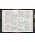 Brown topstitching along the edges of the faux leather Bible cover adds stability and interest. This Bible cover has, a convenient lay-flat spine handle, and a zipper with an antique gold cross-engraved zipper pull. Inside are 2 pen loops to hold pens, pencils, or highlighters.