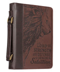 Strength and Defense Walnut-Brown Faux Leather Classic Bible Cover- Exodus 15:2
