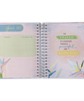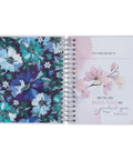 Bright pops of color on this planner are sure to add some fun to your routine. The front and back covers are packed with teal and purple flowers, forming the backdrop for the white frame holding the purple-hued sentiment.