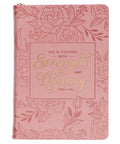 Strength and Dignity Peach Pink Faux Leather Classic Journal with Zipper Closure - Proverbs 31:25