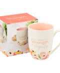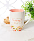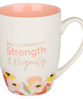 Strength and Dignity Peach Poppy Ceramic Coffee Mug - Proverbs 31:25