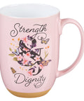 Celebrate the wise women in your life with the Strength and Dignity Pink Butterfly Garden Ceramic Coffee Mug with Exposed Clay Base—the perfect mug for the friend who has stood by you through thick and thin.