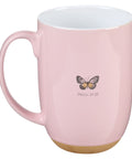 Strength and Dignity Pink Butterfly Garden Ceramic Coffee Mug with Exposed Clay Base - Proverbs 31:25