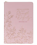 Strength and Dignity Pink Faux Leather Journal with Zippered Closure - Proverbs 31:25