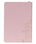 The Strength and Dignity Pink Faux Leather Journal with Zippered Closure is the perfect place to capture your reflections, dreams, and goals. With each entry, you can reflect on your day, note the insights you've gained from Bible study, and record prayers.