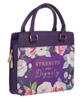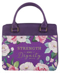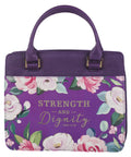 Strength and Dignity Purple Floral Purse-style Bible Cover - Proverbs 31:25