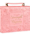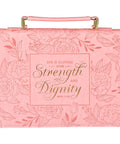 Strength and Dignity Rose Pink Faux Leather Bible Cover - Proverbs 31:25