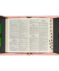 Protect your precious Bible in a stylish case with a beautiful design when you choose the Strength and Dignity Rose Pink Faux Leather Bible Cover. This elegant scuff-resistant Bible case will protect your Bible for years to come.