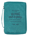 The Strength And Dignity Teal Value Bible Cover celebrates the female mentors in your life with words of praise straight from Scripture. The Bible case pairs a modern design with durable and affordable construction in a very popular color.