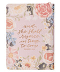 The distinctly feminine design of the Strength and Honor Pink Floral Faux Leather Classic Journal with Zipper Closure bursts with colorful blooms that radiate elegance and charm. It also has a zipper closure to store all your notes securely.