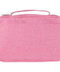 The waterproof pretty-in-pink poly-canvas Bible case is screen printed with a delightful design that features an oversized navy ampersand decorated with charming flowers and butterflies. The sentiment is presented in a swirling black cursive script.