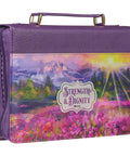 Strength & Dignity Purple Landscape Faux Leather Fashion Bible Cover – Proverbs 31:25