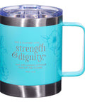 Strength & Dignity Teal Camp-style Stainless Steel Mug - Proverbs 31:25