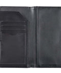 Inside the checkbook cover, you will find two slip pockets. The top pocket has three slots for credit cards, a clear I.D. compartment, and an elastic pen-holder, while the lower pocket is made for holding a checkbook. A plastic divider, stitched along the bottom edge, prevents damage when writing a carbon copy on the subsequent pages.