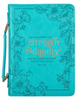 Strength & Dignity Teal Faux Leather Fashion Bible Cover - Proverbs 31:25