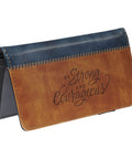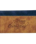 Strong and Courageous Butterscotch and Navy Faux Leather Checkbook Wallet - Joshua 1:9