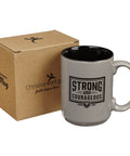 Give the Strong and Courageous Dad Gray Ceramic Coffee Mug as a practical gift for Father's Day or his birthday. This thoughtful present will encourage him to trust in God no matter what life throws at him.