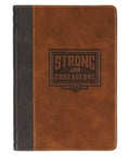 Strong and Courageous Espresso and Saddle Tan Faux Leather Classic Journal - Joshua 1:9