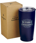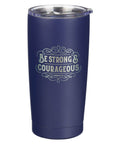 Strong and Courageous Navy Blue Stainless Steel Travel Tumbler - Joshua 1:9