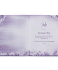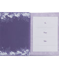 The interior pages are printed in a single color and decorated with floral designs, and the gilt-edged page edges give the book an elegant touch. Plus, a ribbon marker and a personalized presentation page are included.