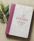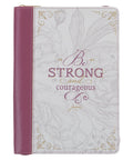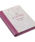 Take courage from the message of the Strong and Courageous Topaz Pink Faux Leather Journal with Zipper Closure as you journal your thoughts, plans, and payers on its lined pages.
