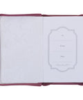 The Strong and Courageous Topaz Pink Faux Leather Journal with Zipper Closure is part of the Jewel Tone Collection, which features three sentiments in three jewel-toned designs: tourmaline teal, amethyst purple, and topaz pink. Each design includes a faux leather Bible case, ceramic coffee mug, faux leather journal, and reusable shopping bag.