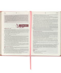 The faux leather cover of the Bible is topstitched along its edges to ensure a quality binding. A satin ribbon marker and gilt-edged page edges are two luxury features that elevate the design of the Bible. Inside, you will find the 10-point NLT text presented in a single-column format and printed in black and brown ink to create visual interest. Thanks to its Smyth-sewn construction, the Bible opens flat, revealing every word of the text without compromise. Positioned at the Bible's front is a presentation page, offering the perfect opportunity for personalization when giving it as a gift.