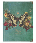 The Teal Hope Butterfly Hardcover Journal is part of the Teal Secret Garden Hope Butterfly Collection that includes a ceramic coffee mug, a stainless steel travel mug, a faux leather Bible cover, a hardcover journal, a glass water bottle, a notebook set, a coaster set, and a magnet set.