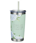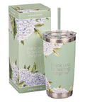 The Thank You For Helping Me Grow Stainless Steel Tumbler with Reusable Plastic Straw is a part of the Thank You Hydrangea Collection, specifically designed to honor and appreciate hardworking teachers. The collection includes a ceramic mug, stainless steel tumbler, and a gift bag.