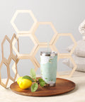 Elegant silver bands gracefully frame the tumbler's top and bottom. The double-walled interior of the tumbler ensures your beverages remain at the perfect temperature for up to 24 hours while also effectively shielding the exterior from any heat or condensation. Crafted from smooth stainless steel, this tumbler boasts exceptional durability and resistance to mold and bacteria.