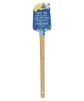 This deep navy spatula head features soft yellow, white, and green floral accents, framing the light-blue hand-lettered sentiment.