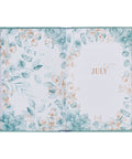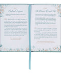 The front cover of this beautifully designed devotional features gorgeous heat-debossed floral swags that frame the silver-foiled sentiment.
