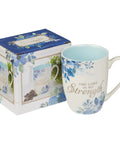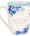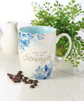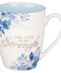 The Lord is My Strength Blue Floral Ceramic Coffee Mug - Psalm 28:7