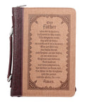 The Lord's Prayer Two-tone Brown Faux Leather Classic Bible Cover features a beautifully illustrated rendition of the Lord’s Prayer.