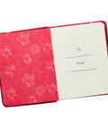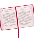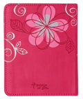 The One-Minute Devotions for Girls Pink Faux Leather Devotional is written for tween girls who are navigating the challenges children face today. Life is not always pretty and wrapped with a bow. Author Carolyn Larsen offers a devotional for tween girls that sensitively deals with real-life issues. The small cherry pink devotional books feature large printed flowers superimposed by heat-debossed outlines of petals and leaves. Silver foiled branches wave through the design that stretches across the front and back covers. The title is heat-debossed, accented with white print, and appears on the front cover and spine.
