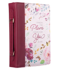 Protect your Bible with The Plans I Have for You Plum Floral Faux Leather Fashion Bible Cover and be encouraged by its message every time you open it to spend time in God's Word.