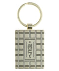 An antique gold split metal key ring joins to the medallion so you can easily attach your keys. The back of the keychain features a gold grid pattern engraved into the surface, while the Scripture reference is inscribed in the middle.
