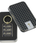 The Plans Modern Blue Grid Keychain in a Gift Tin - Jeremiah 29:11