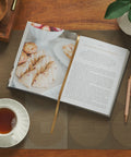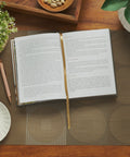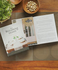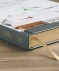 The cover features a peaceful image of a welcoming table. Embossing on the chairs, plates, and vase of flowers brings them to life. Gold foiling on the subtitle and spine adds extra shine. A matching gold ribbon marker completes the design.