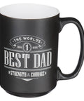 It takes a lot to raise a family, so let your father know he's got what it takes with the World's Best Dad Ceramic Coffee Mug. Courage, strength, compassion, love, tenderness, and faith are key attributes for dads, and this mug's design, based on Joshua 1:9, highlights two of the top ones.The exterior of this sturdy ceramic cup is a solid black contrasted with a crisp white interior. White lettering in a collegiate style design spells out the sentiment.